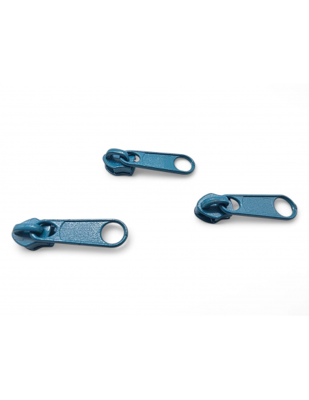 Cursor metálico para cremallera por metros Maya 5 en el color 210. Compatible con cremalleras continuas de nylon del mismo número. Es ideal para trabajos de costura, así como para calzado, bolsos y marroquinería, ofreciendo un acabado preciso y duradero.