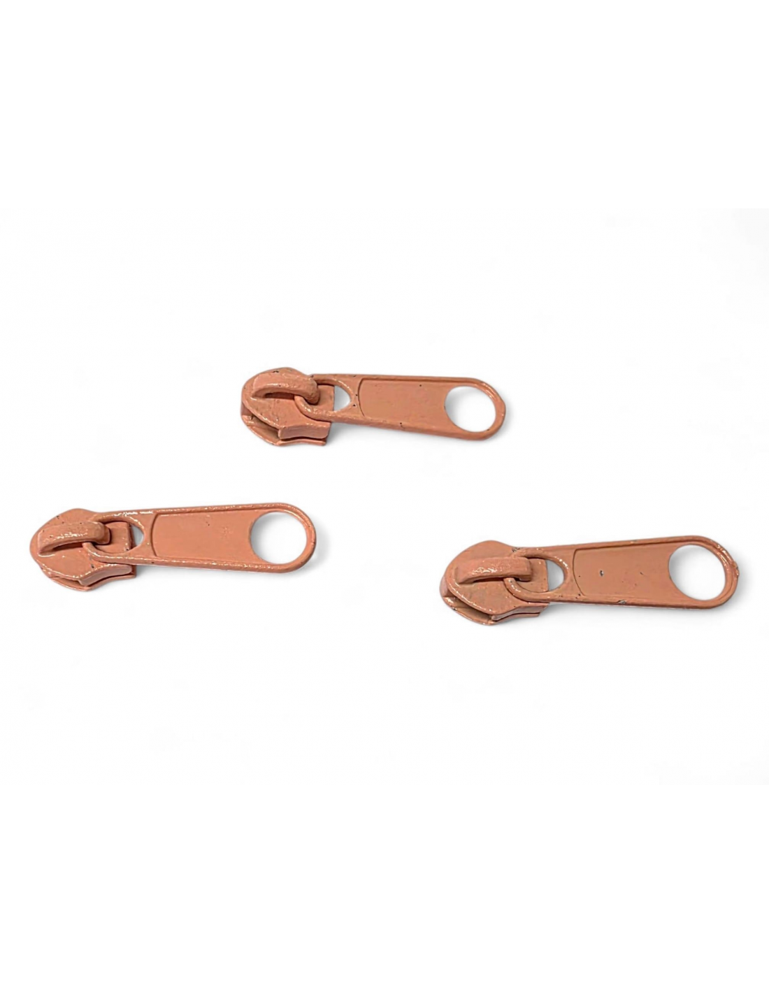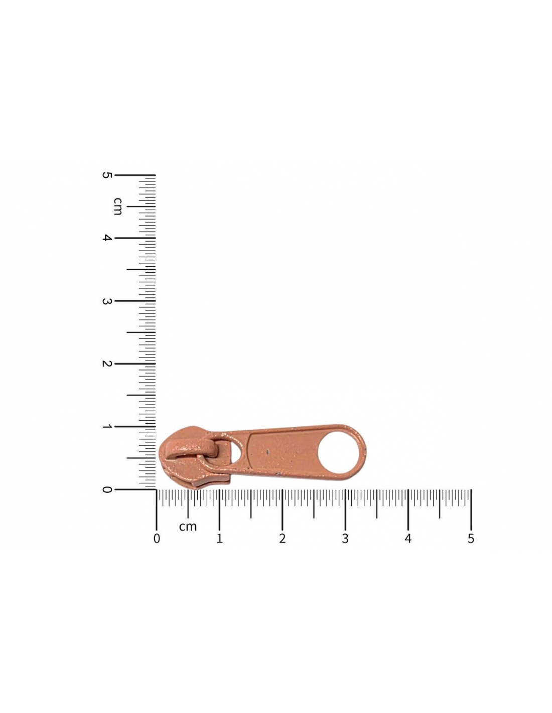 Cursor metálico para cremallera por metros Maya 5 en el color 054. Compatible con cremalleras continuas de nylon del mismo número. Es ideal para trabajos de costura, así como para calzado, bolsos y marroquinería, ofreciendo un acabado preciso y duradero.
