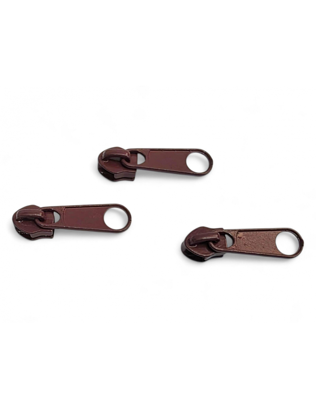 Cursor metálico para cremallera por metros Maya 5 en el color 074. Compatible con cremalleras continuas de nylon del mismo número. Es ideal para trabajos de costura, así como para calzado, bolsos y marroquinería, ofreciendo un acabado preciso y duradero.