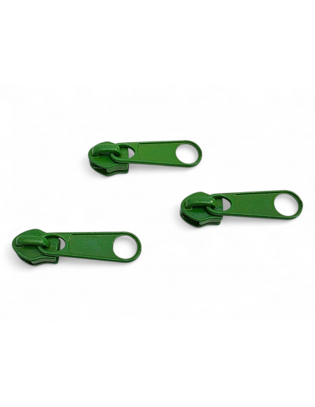 Cursor metálico para cremallera por metros Maya 5 en el color 199. Compatible con cremalleras continuas de nylon del mismo número. Es ideal para trabajos de costura, así como para calzado, bolsos y marroquinería, ofreciendo un acabado preciso y duradero.