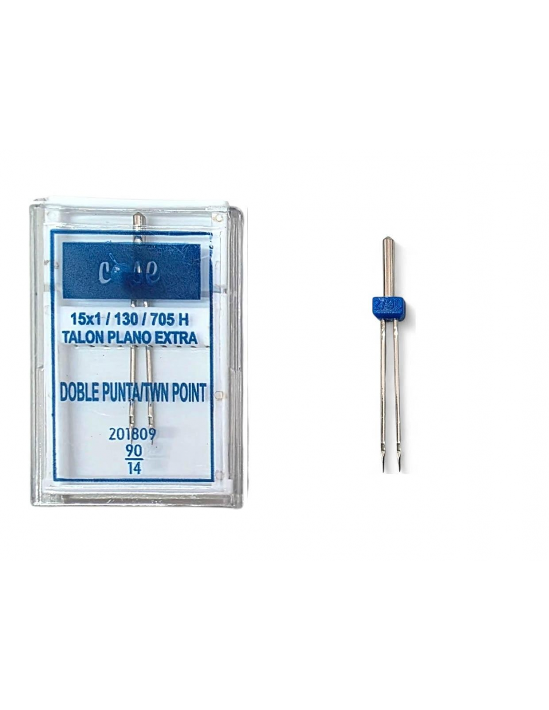 Aguja doble para máquina doméstica – 90/14 – Talón plano
