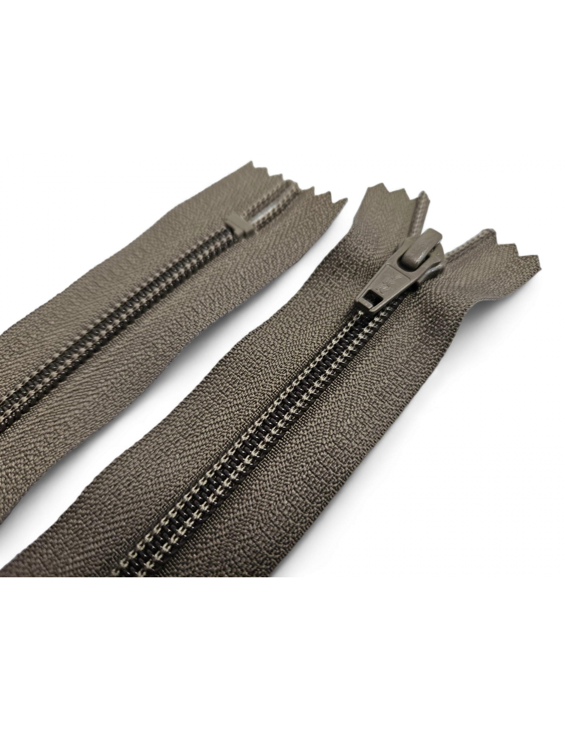 Cremallera YKK cerrada con topes, con maya 5 de nylon cierre en espiral y con cursor metálico al tono de la cinta de poliéster