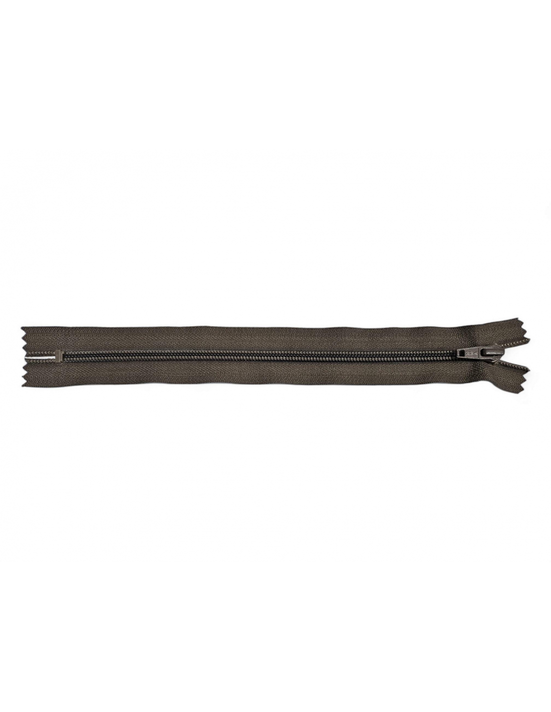 Cremallera YKK cerrada con topes, con maya 5 de nylon cierre en espiral y con cursor metálico al tono de la cinta de poliéster