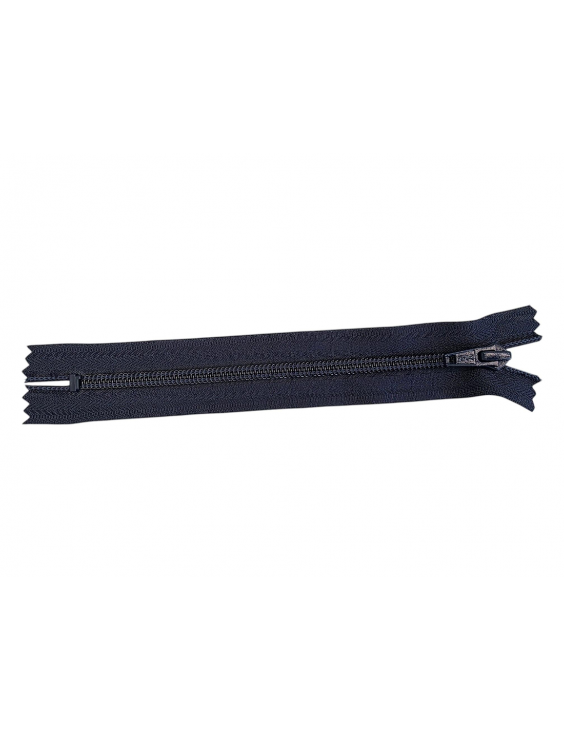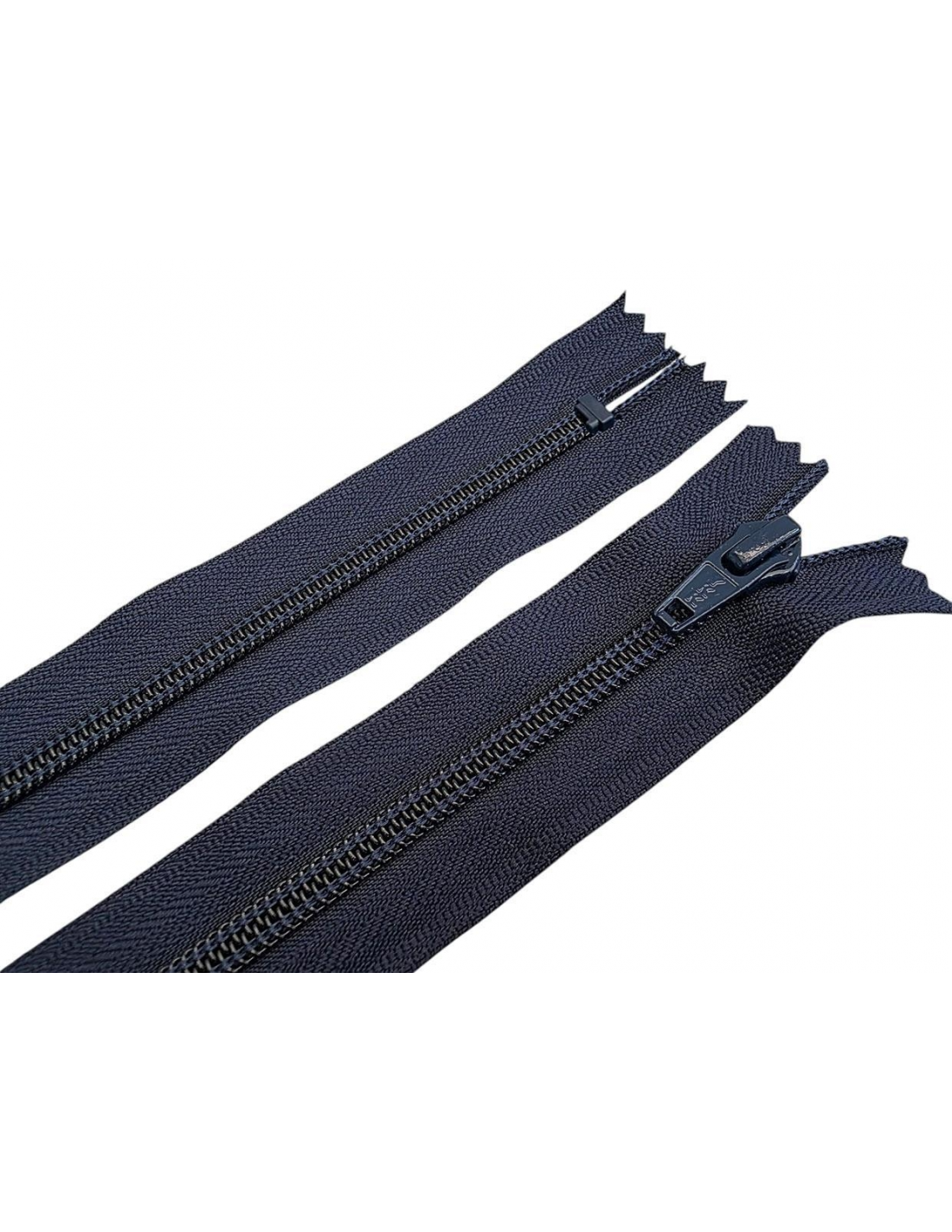 Cremallera YKK cerrada con topes, con maya 5 de nylon cierre en espiral y con cursor metálico al tono de la cinta de poliéster
