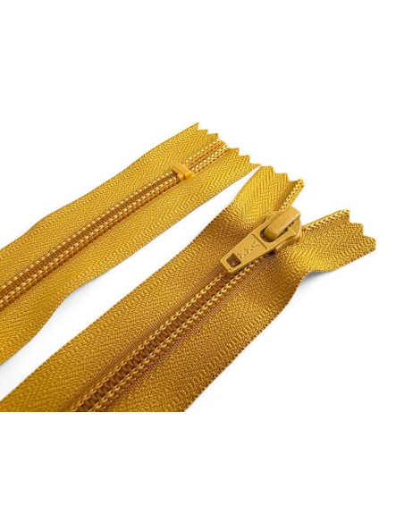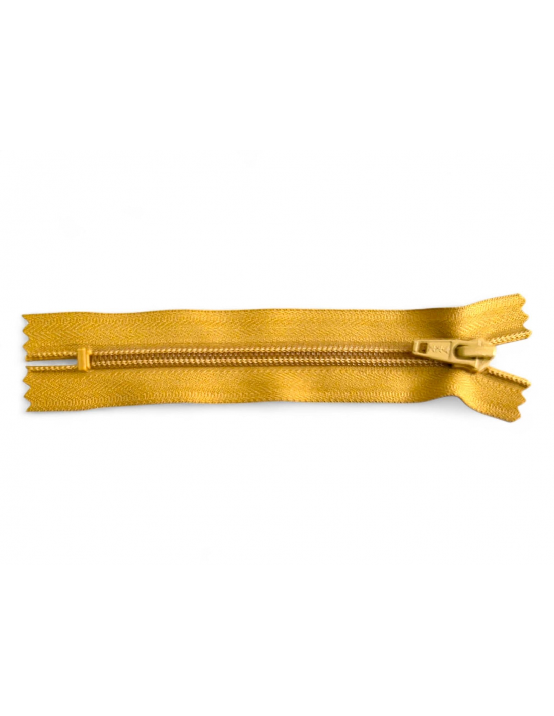 Cremallera YKK cerrada con topes, con maya 5 de nylon cierre en espiral y con cursor metálico al tono de la cinta de poliéster