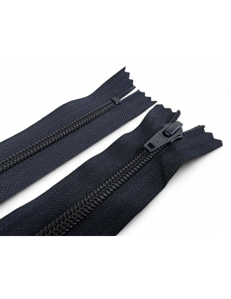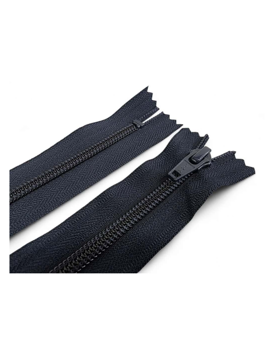 Cremallera YKK cerrada con topes, con maya 5 de nylon cierre en espiral y con cursor metálico al tono de la cinta de poliéster