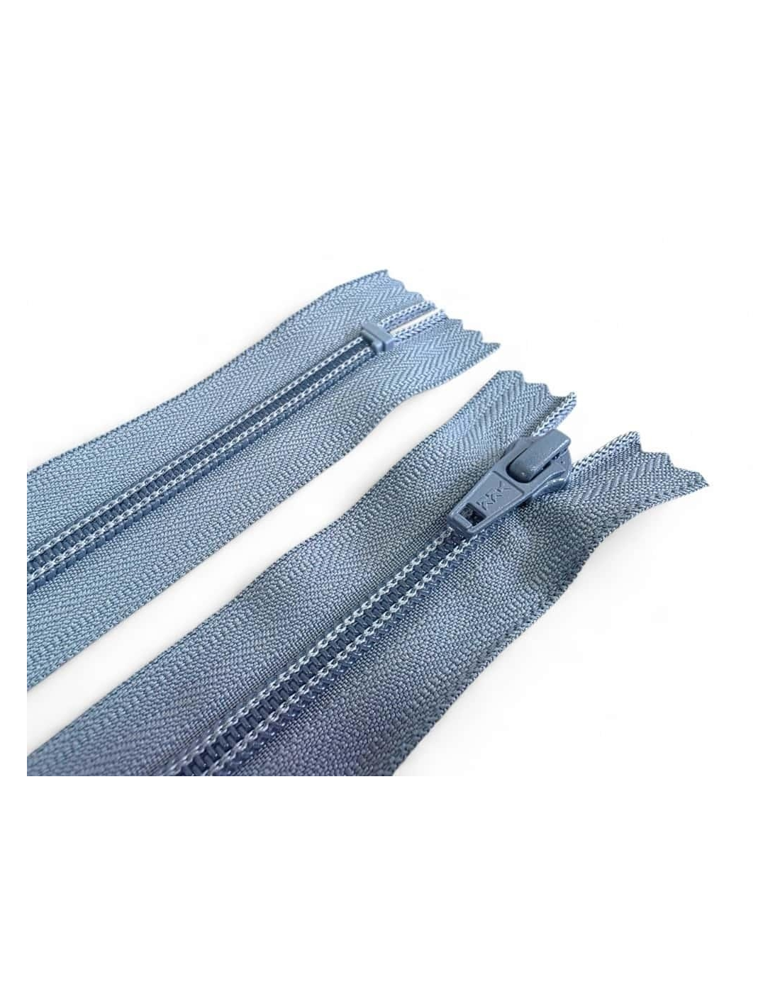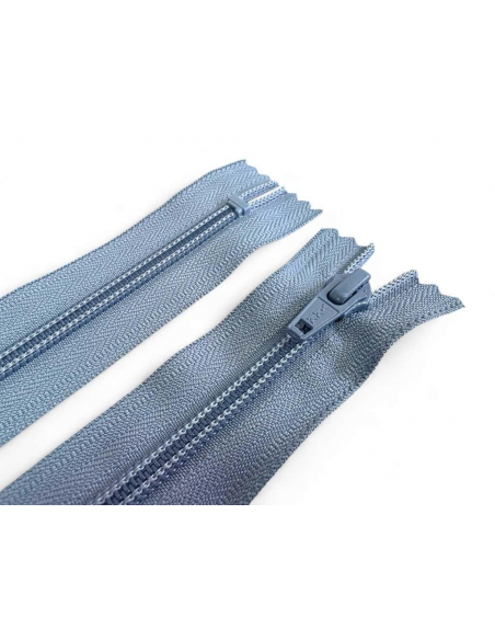 Cremallera YKK cerrada con topes, con maya 5 de nylon cierre en espiral y con cursor metálico al tono de la cinta de poliéster