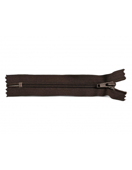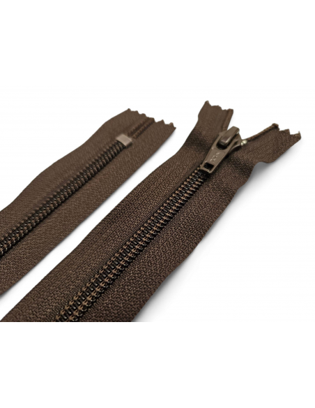 Cremallera YKK cerrada con topes, con maya 5 de nylon cierre en espiral y con cursor metálico al tono de la cinta de poliéster