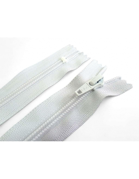 Cremallera YKK cerrada con topes, con maya 5 de nylon cierre en espiral y con cursor metálico al tono de la cinta de poliéster